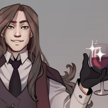 ‘i'd like to propose a toast...'sebastian (he/him) is the master of ceremonies at the red dream. always busy making sure that his patrons want for nothing, it's hard to hold him down for a conversation. when you can talk to him, however, he tells you to relax, to enjoy yourself, to worry for nothing as he reassures you that all will be well, before going back to work.